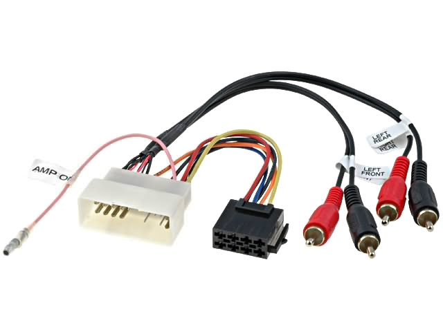 Automobilio gamyklines magnetolos jungties perejimas i standartine ISO jungti, automobiliams su gamykliniu garso stiprintuvu.