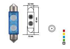 Bosma lemputė SV8.5, geltona, 10X42, 2x šviesos diodai, aukštos galios