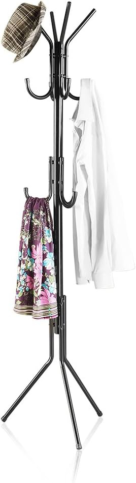 Paltų stovas, metalinė kabykla su 11 kabliukų, 4 kojos, drabužių kabykla, paltai, kepurės, krepšiai, įėjimo miegamojo biurui, juoda